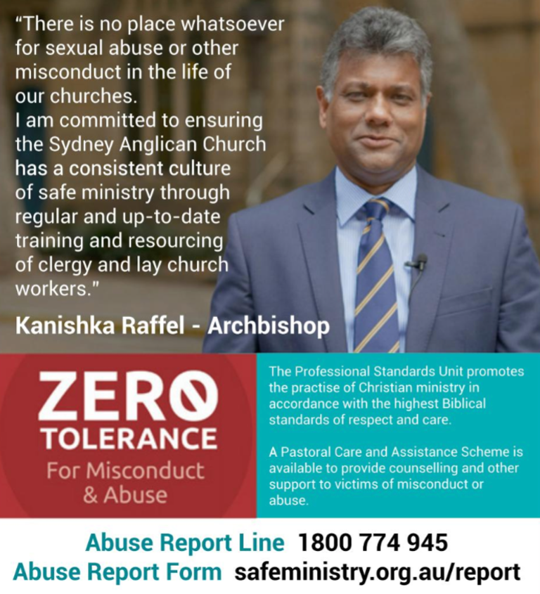 The Safe Ministry course is our Diocese’s best practice in equipping those working with children (and other vulnerable people) with the knowledge and understanding they need to build a culture of safe ministry. The Anglican Diocese of Sydney requires all people working in ministry to children and youth, including ministers and assistant ministers, to complete Safe Ministry Essentials. Contents include: