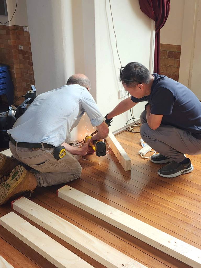 It has been a wonderful privilege for multiple congregations to participate in building the Back Stage partition in the War Memorial Hall, our Great Wall! Each Monday, members from English and Mandarin have joined together to work and fellowship.