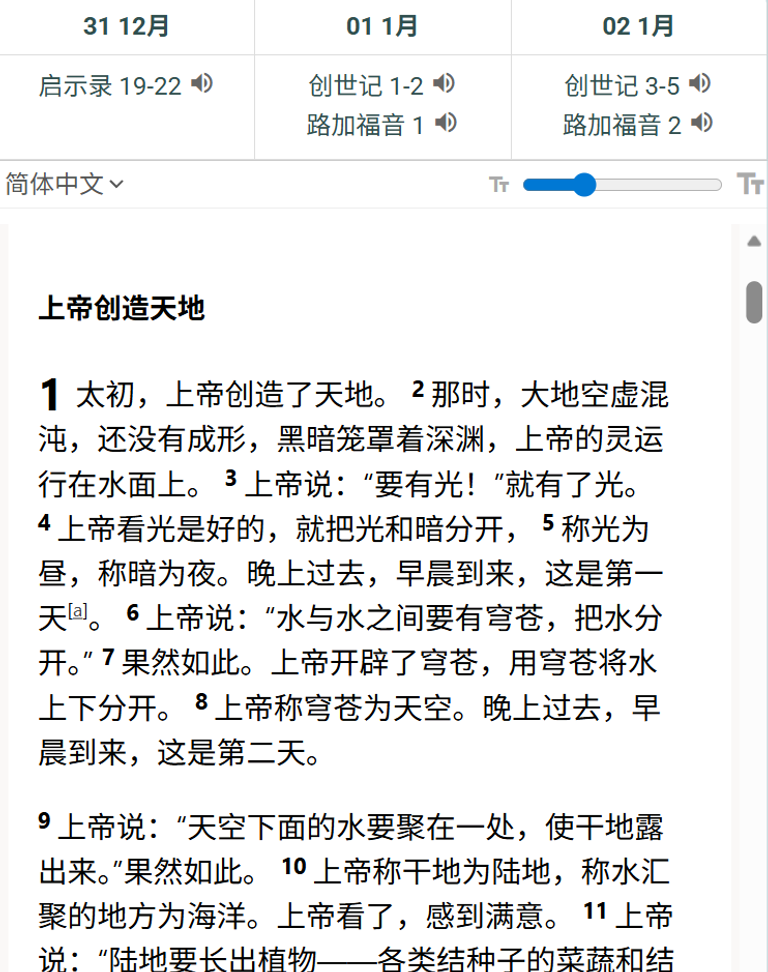 Our Bible-in-a-year program help you draw near to God through His Word. Each day, the Bible readings are available from Biblegateway.com in Mandarin text as well as audio format. It is designed to be no-cost, simple to use and free from distractions so that every person in our church can read, meditate upon and apply God's word to our lives.